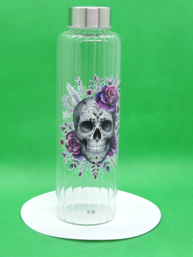 Bouteille en verre avec motif tête de mort(500ml)