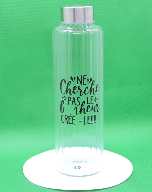 Bouteille en verre avec inscription pour boisson froide ou chaude (500ml)