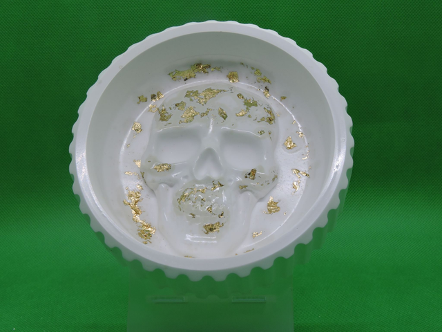 Cendriller rond tete de mort blanc avec feuilles d'or (,dia12)