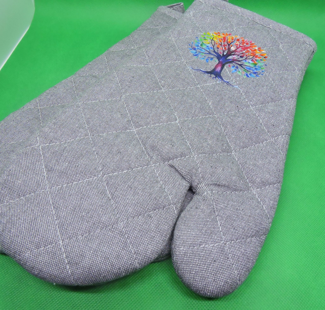 Gant de cuisine gris avec motif arbre de vie(32,5x18,5cm)