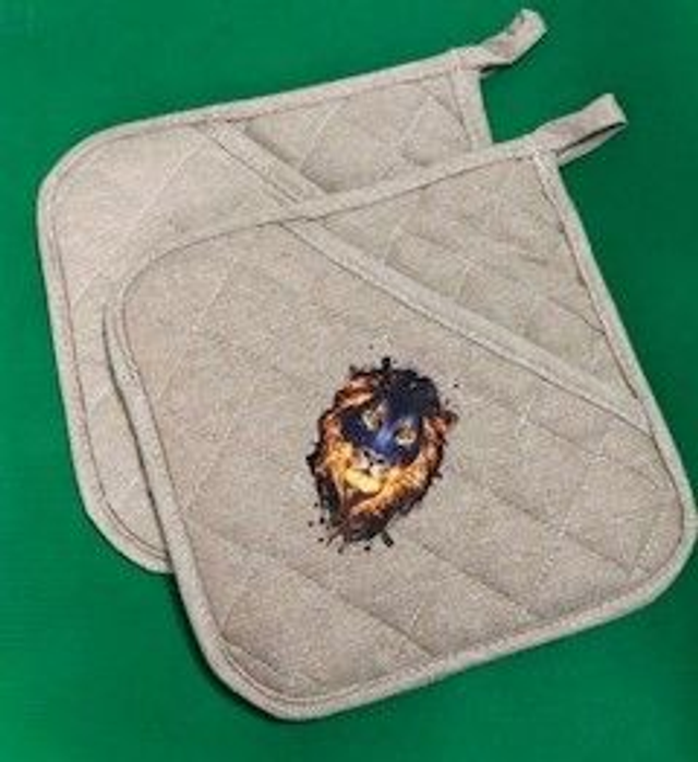 Manique beige avec motif tête de lion (21,5x21,5cm)