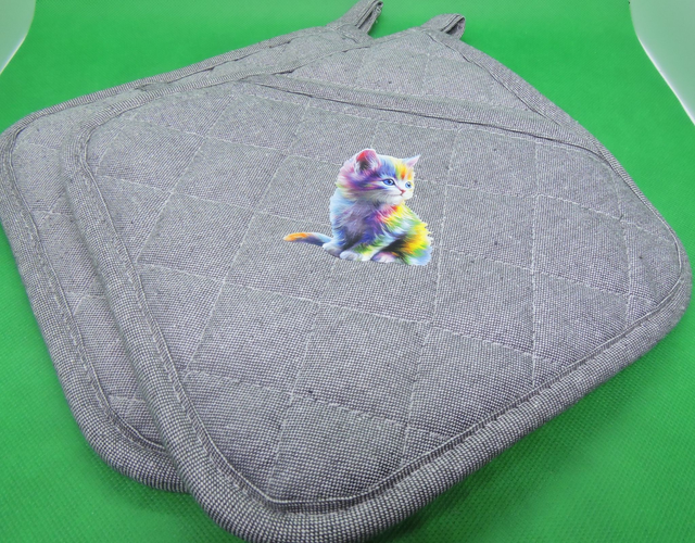 Manique gris avec motif chat (21,5x21,5cm)