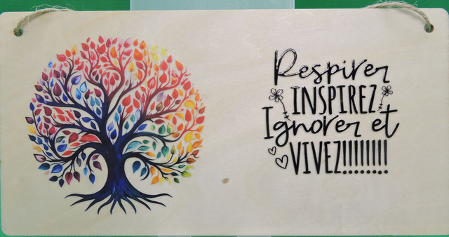 Panneau en bois avec inscription et motif arbre de vie a suspendre ou a fixer(20x10)