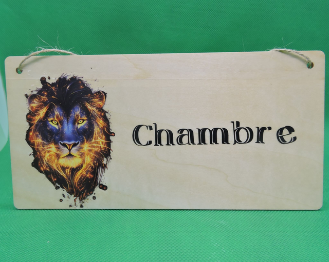 Panneau en bois avec inscription chambre et motif a suspendre ou a fixer (20x10cm)