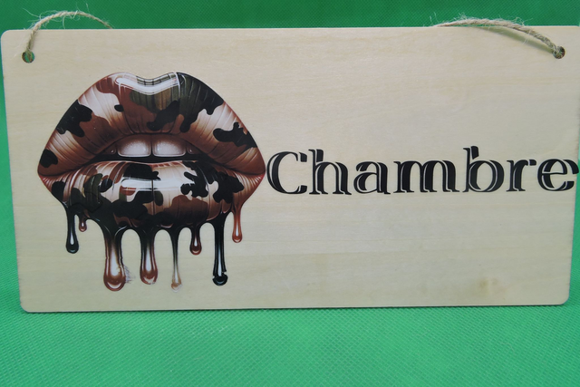 Panneau en bois avec inscription chambre et motif a suspendre ou a fixer(20x10cm)