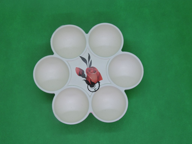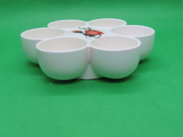 Porte œufs avec motif ,blanc ,rayure rose (dia-14,5)