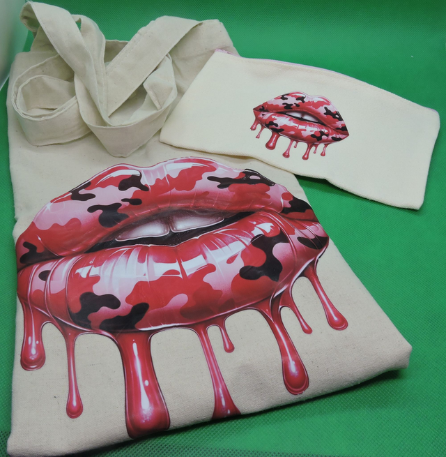 Ensemble sac tissus et pochette avec motif(41x39)(21x12)
