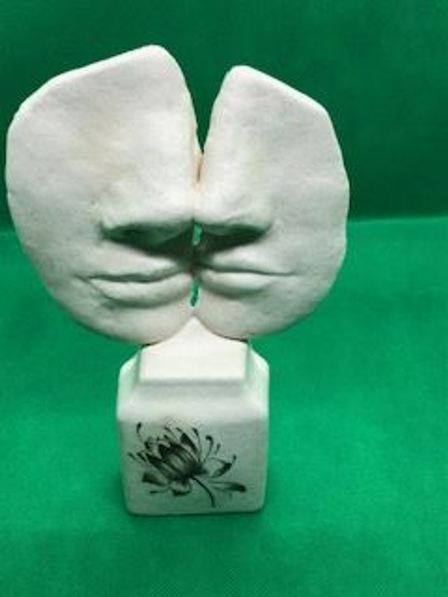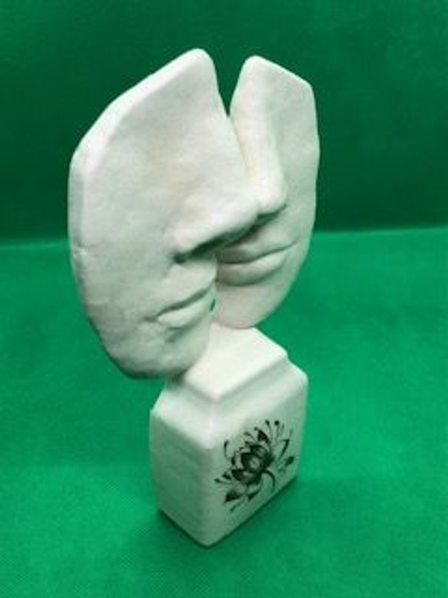 Statuette visage homme et femme ,crème(18,5x11,5cm)