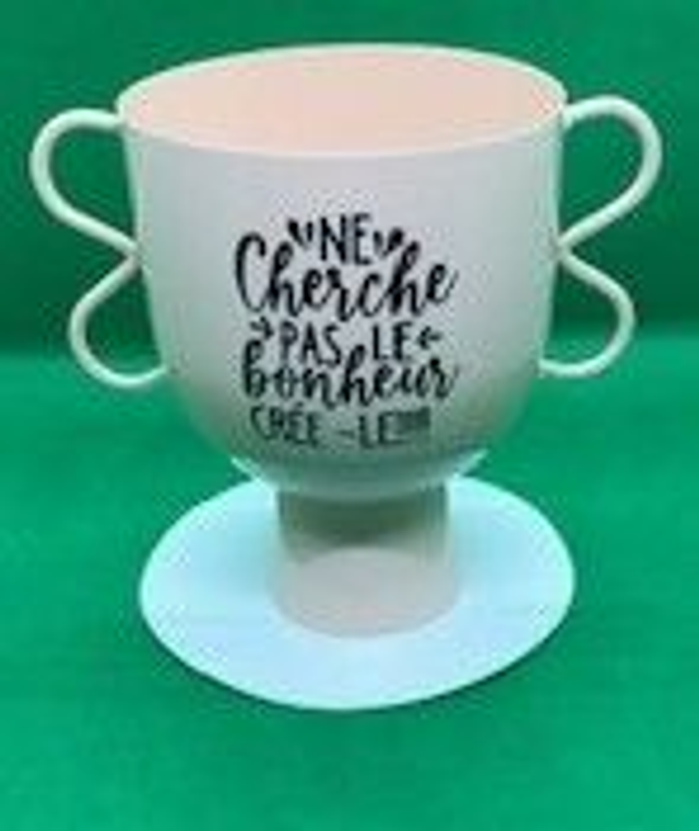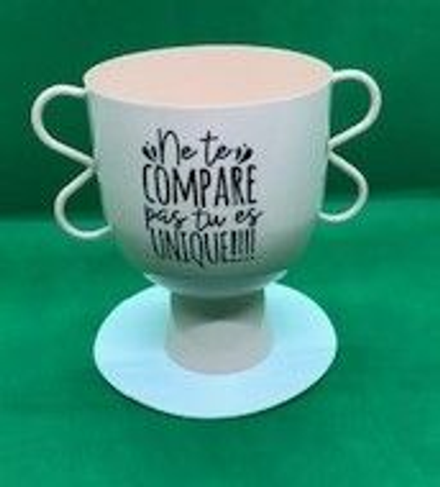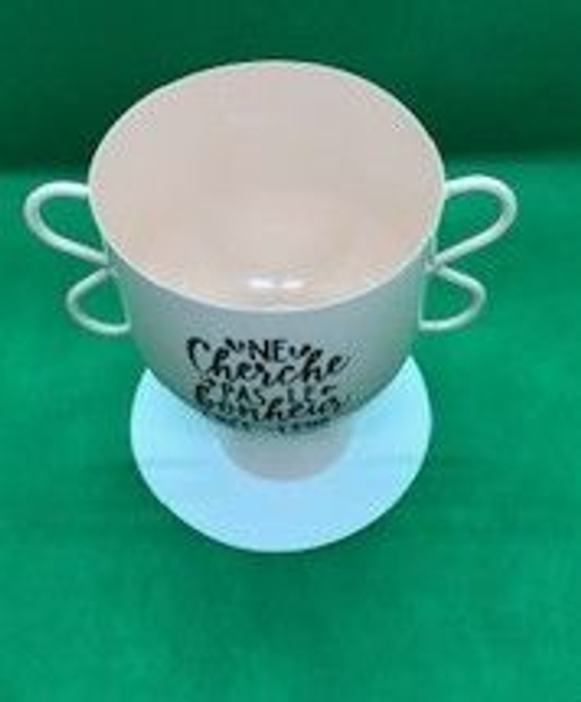 Vase intérieur ou extérieur beige rosé avec inscription(18x12x16)cm