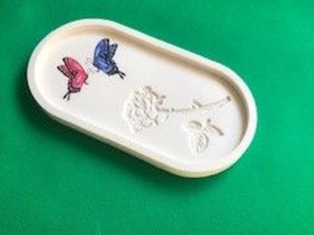 Vide poche ovale ,crème motif rose et papillon,(17,5x9cm)