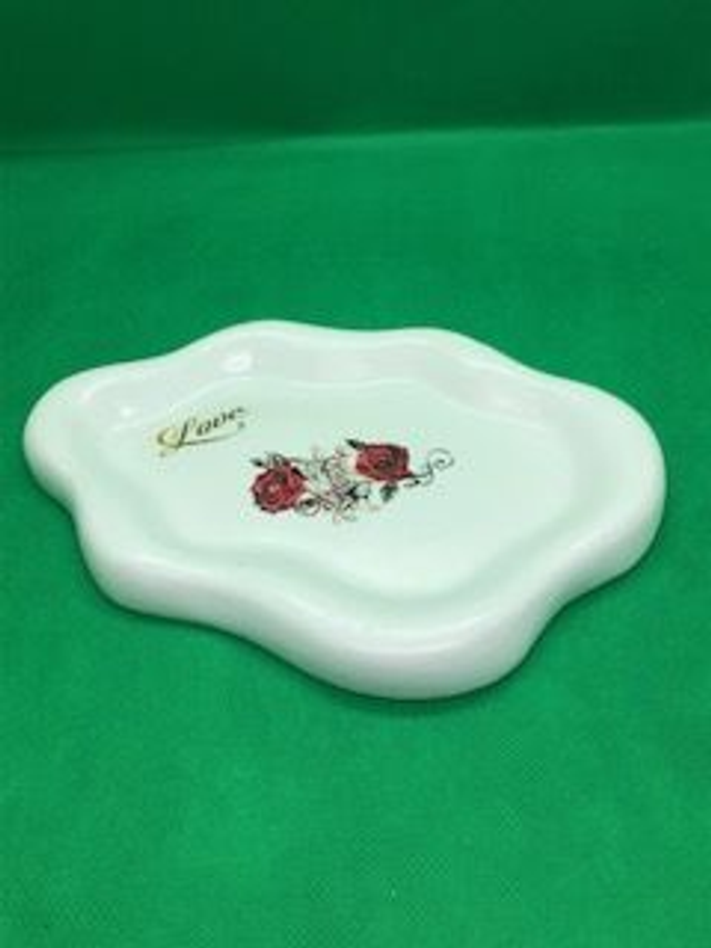 Vide poche nuage avec inscription "love" et motif rose, blanc,(19x14cm)