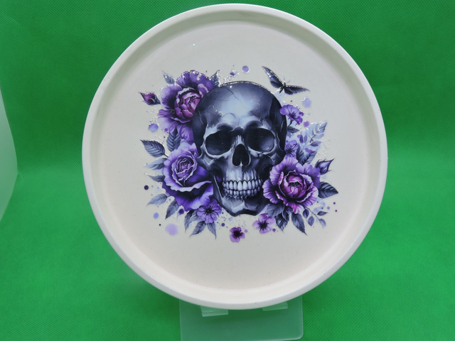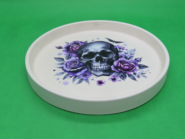 Vide poche rond avec motif tête de mort avec fleur, beige,(17x2cm)