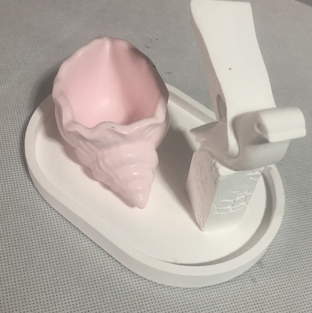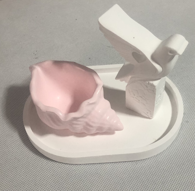Ensemble plateau blanc15x10 , coquillage rose 10x5 , oiseau colombe blanche 10x6