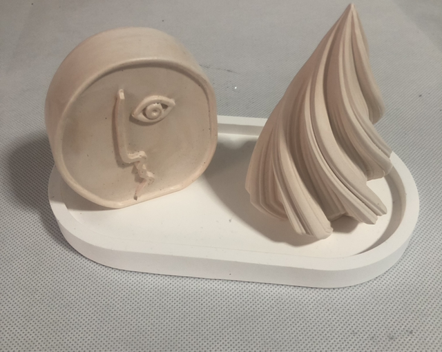 ensemble de 3 décorations plateau blanc 18,5x10 ,statuette marbré blanc et terracotta 8x7 ,sphère pointue beige 10x7