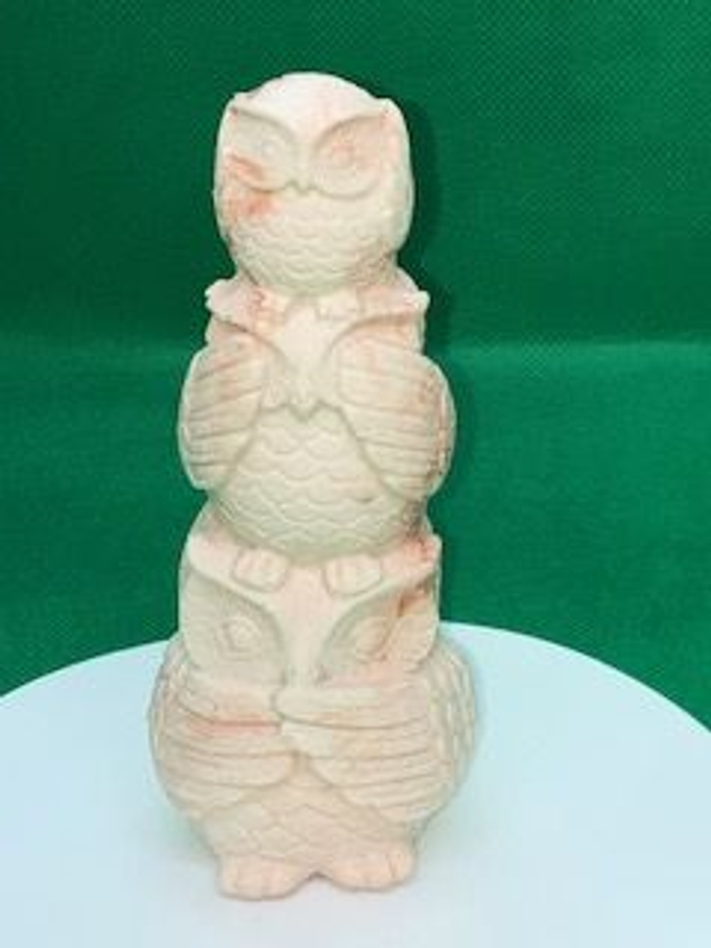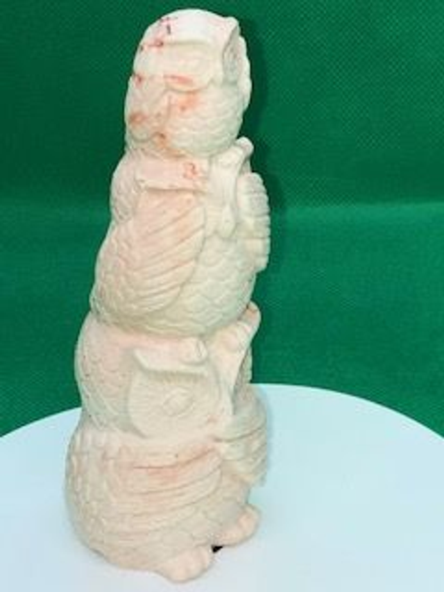 Figurine hiboux j'entend pas, je vois pas, je parle pas, couleur terra cotta(14x4cm)