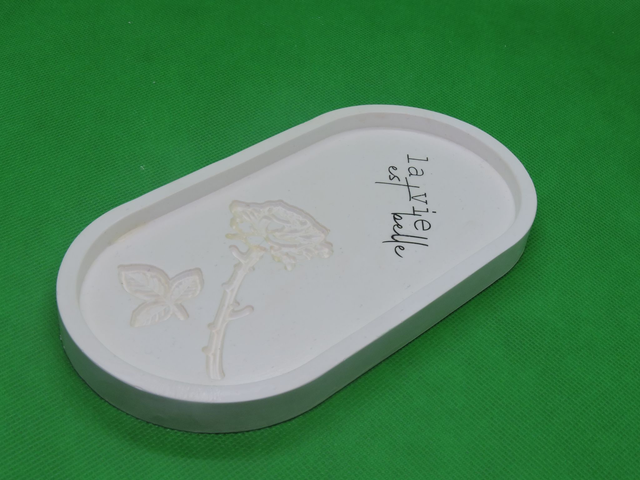 Vide poche ovale blanc, avec motif rose et inscription (17,5x9cm)