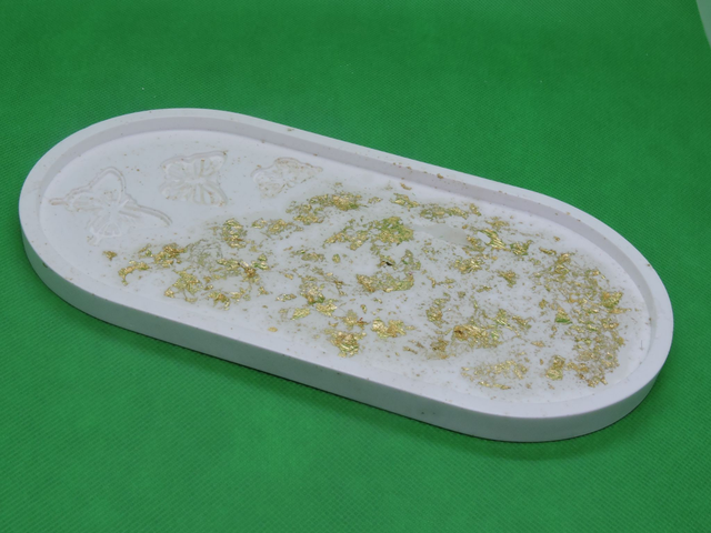 Vide poche ovale motif papillon avec feuille d'or,(22,7x11,5cm)