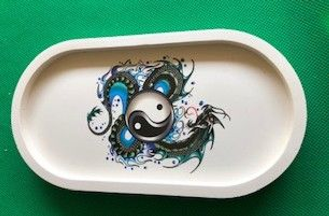 Vide poche ovale ,beige avec motif dragon( 18x9,5cm)